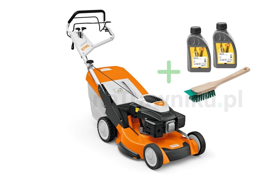 Do kosiarki dodajemy szczotkę do czyszczenia i 2x olej SAE30 na pierwsze uruchomienie i po dotarciu GRATIS!!!