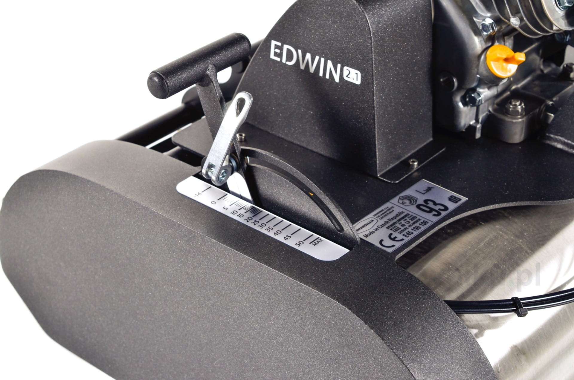Czterosuwowy silnik spalinowy Briggs & Stratton o pojemności skokowej 127 cm3 i mocy 2,4 kW stanowi idealne połączenie łatwej konserwacji, niskiej wagi, minimalnego zużycia paliwa i niskiej emisji spalin. Jednak największą zaletą silnika jest jego wyjątkowo cicha praca, dzięki której Swardman Edwin 2.1 jest najcichszą kosiarką spalinową na świecie o poziomie hałasu na stanowisku operatora zaledwie 79 dB.