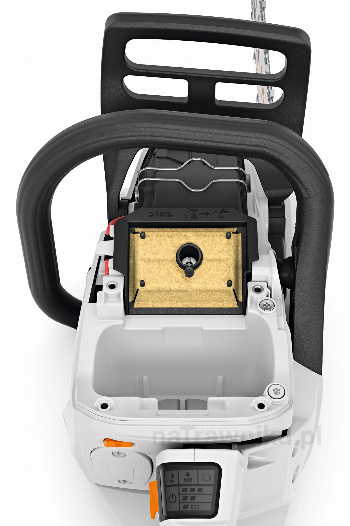 Prezentowana pilarka STIHL jest łatwa i wygodna obsługa dzięki intuicyjnemu panelowi informacyjno-obsługowemu z wyświetlaczem LED oraz uchwytowi obsługowemu z funkcją potencjometru do płynnej regulacji prędkości. To nowoczesne urządzenie posiada zintegrowany filtr powietrza chłodzącego silnik, praktyczną nakrętkę pokrywy koła napędowego z zabezpieczeniem przed zgubieniem. W wyposażeniu seryjnym pilarki znajduje się czujnik oleju i wyświetlacz LED do aktywnego informowania użytkownika o zbyt niskim poziomie oleju. Miejsce na obudowie urządzenia na STIHL Smart Connector 2 A. Zachęcamy do zakupu oraz zapoznania z całym asortymentem pilarek akumulatorowych.