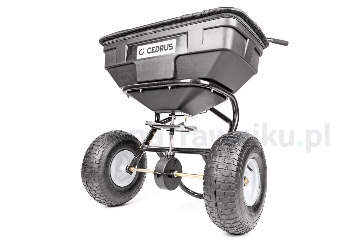 Rozsiewacz pchany Cedrus SP31515A o ładowności 56 kg to wydajne rozwiązanie do równomiernego rozsiewania nawozu, nasion trawy, piasku czy soli.